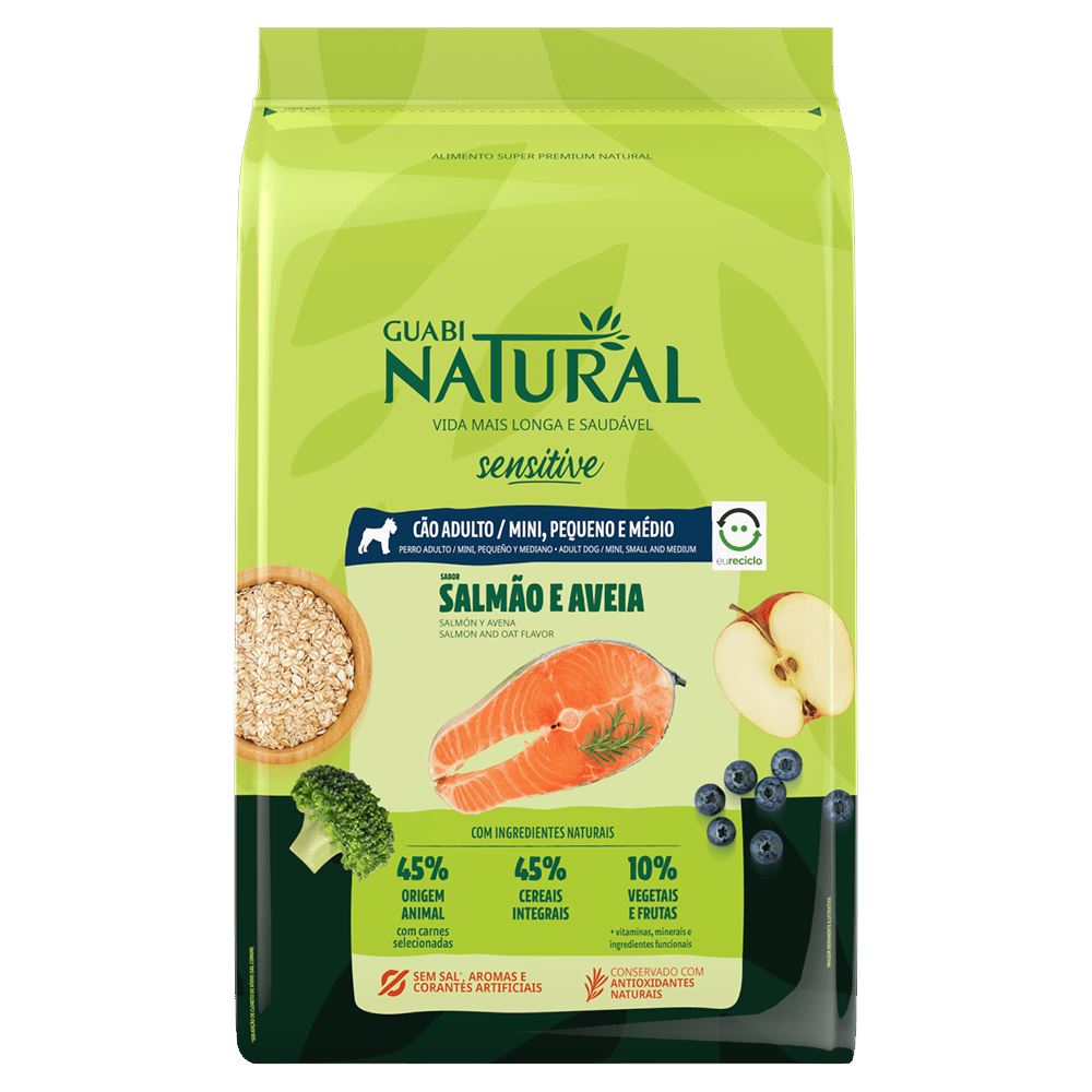 GUABI NATURAL CÃO SENSITI MINI, PEQUENO E MÉDIO (SALMÃO E AVEIA) - 2,5KG