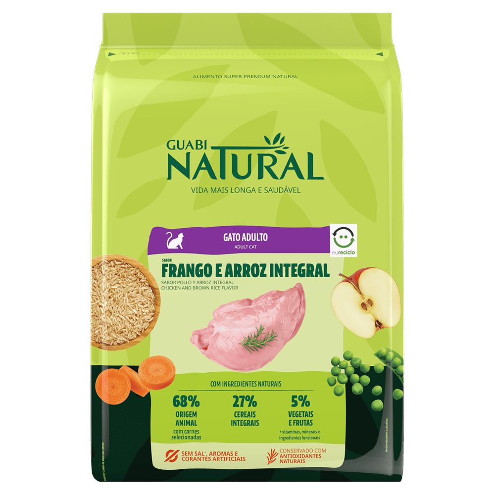 GUABI NATURAL GATO ADULTO (FRANGO E ARROZ) INTEGRAL - 7,5KG