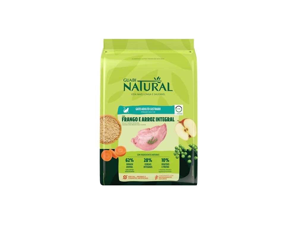 GUABI NATURAL GATO CASTRADO ADULTO (FRANGO E ARROZ) INTEGRAL - 7,5KG