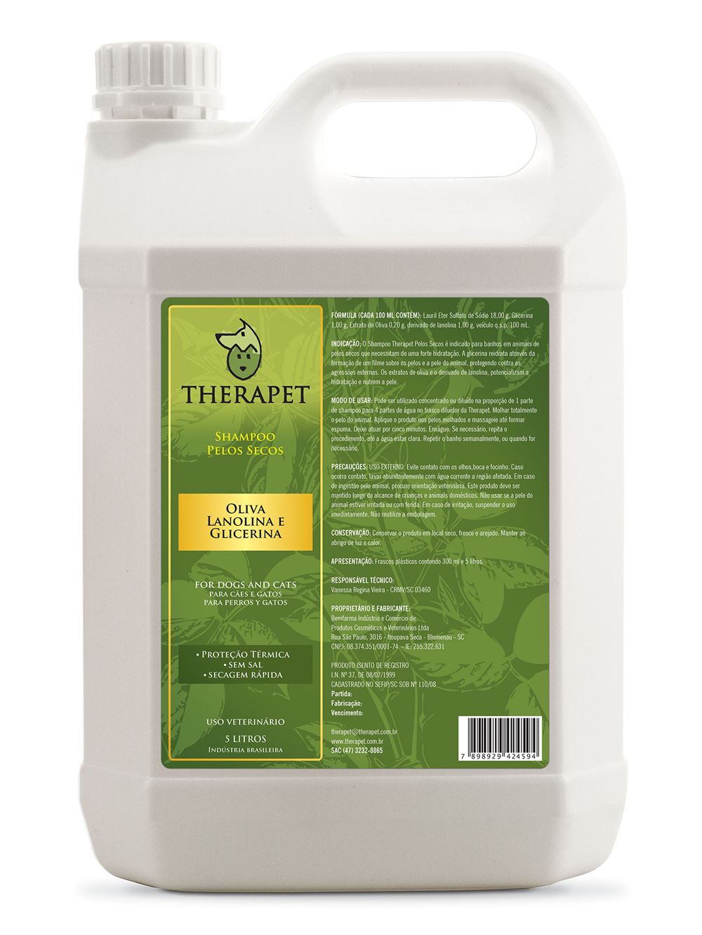 THERAPET SHAMPOO PELOS SECOS - 5L